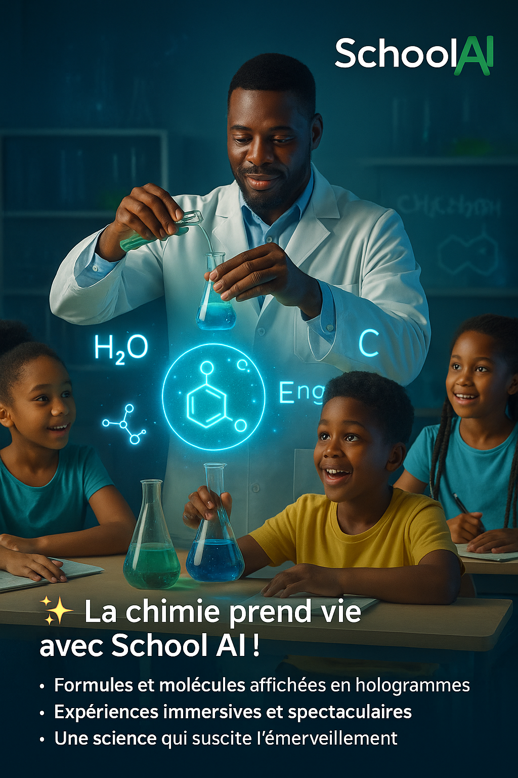 School AI est une entreprise congolaise spécialisée dans l’intégration de l’Intelligence Artificielle (IA) dans l’éducation.
